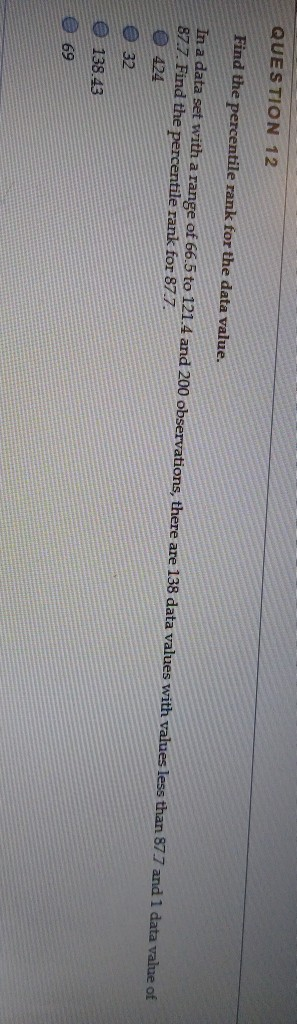 Percentile rank = (12 + (0.5 * 3)) / 48 * 100 2. What does percentile tell you about a statistical value? Percentile rank = 13.5 / 48 * 100 4. Percentile rank = 28.125% for sample b percentile rank is calculated using the formula given below percentile rank = m / y x 100 1. Use your ranked data set to find your percentile.